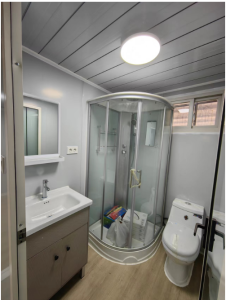 | Electrical system | parameters | 1.Standard national standard wiring; 6mm² for the main line, 4mm² for air conditioner sockets, 2.5mm² for regular sockets, and 1.5mm² for lighting. (Customizable to meet certification requirements based on the country of use) 2.Circuit breaker system; 1 unit of 2P63A main switch, and one each of 2P43A/2P32A/1P20A branch residual current circuit breakers. 3.Lighting; Equipped with six flameproof LED ceiling lights. 4.Outlets; Standard international three-pin outlets (configurable to meet customer-specific outlet standards). |